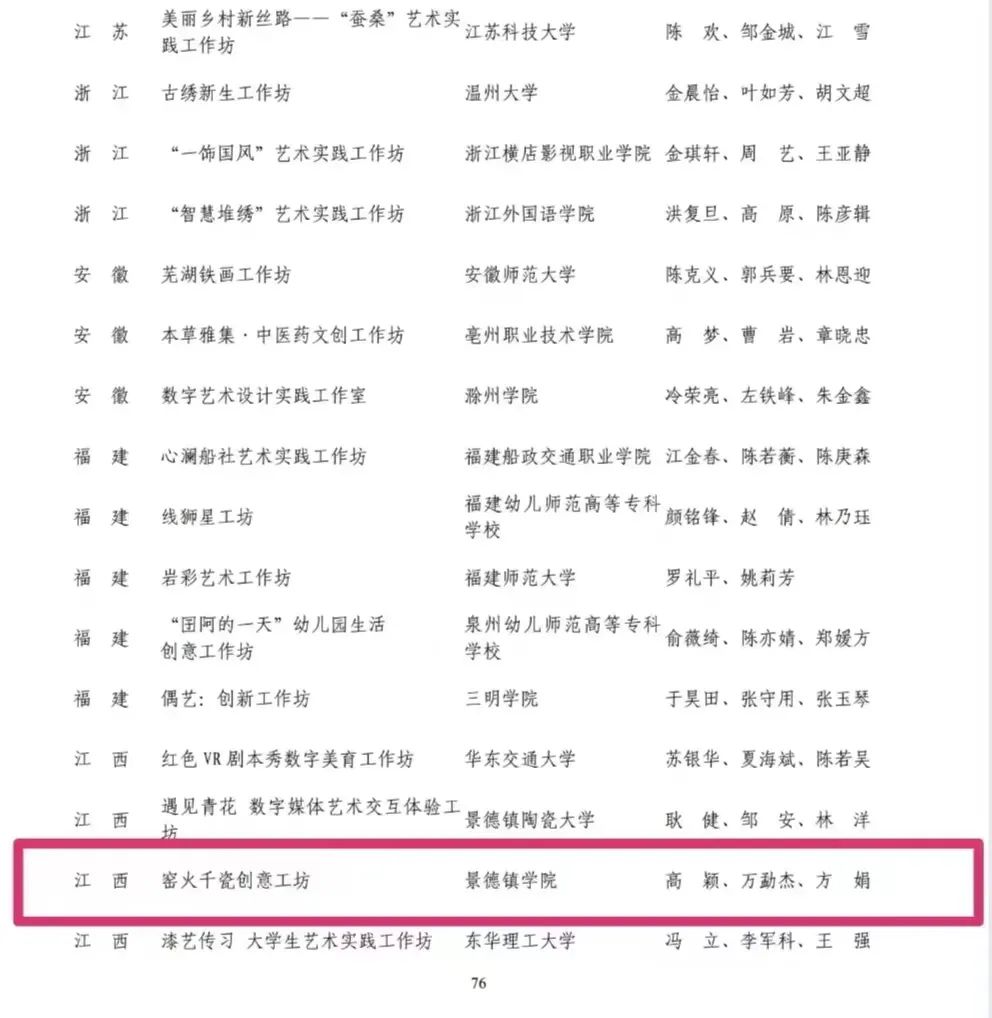 (本网讯:艺术学院)近日,教育部官网公示了全国第七届大学生艺术展演活动各项目评选结果,beat365官网陶瓷美术与设计艺术学院传来喜讯,由高颖、万勐杰、方娟老师精心指导的“窑火千瓷创意工坊”项目,荣获二等奖。 获奖名单 ...