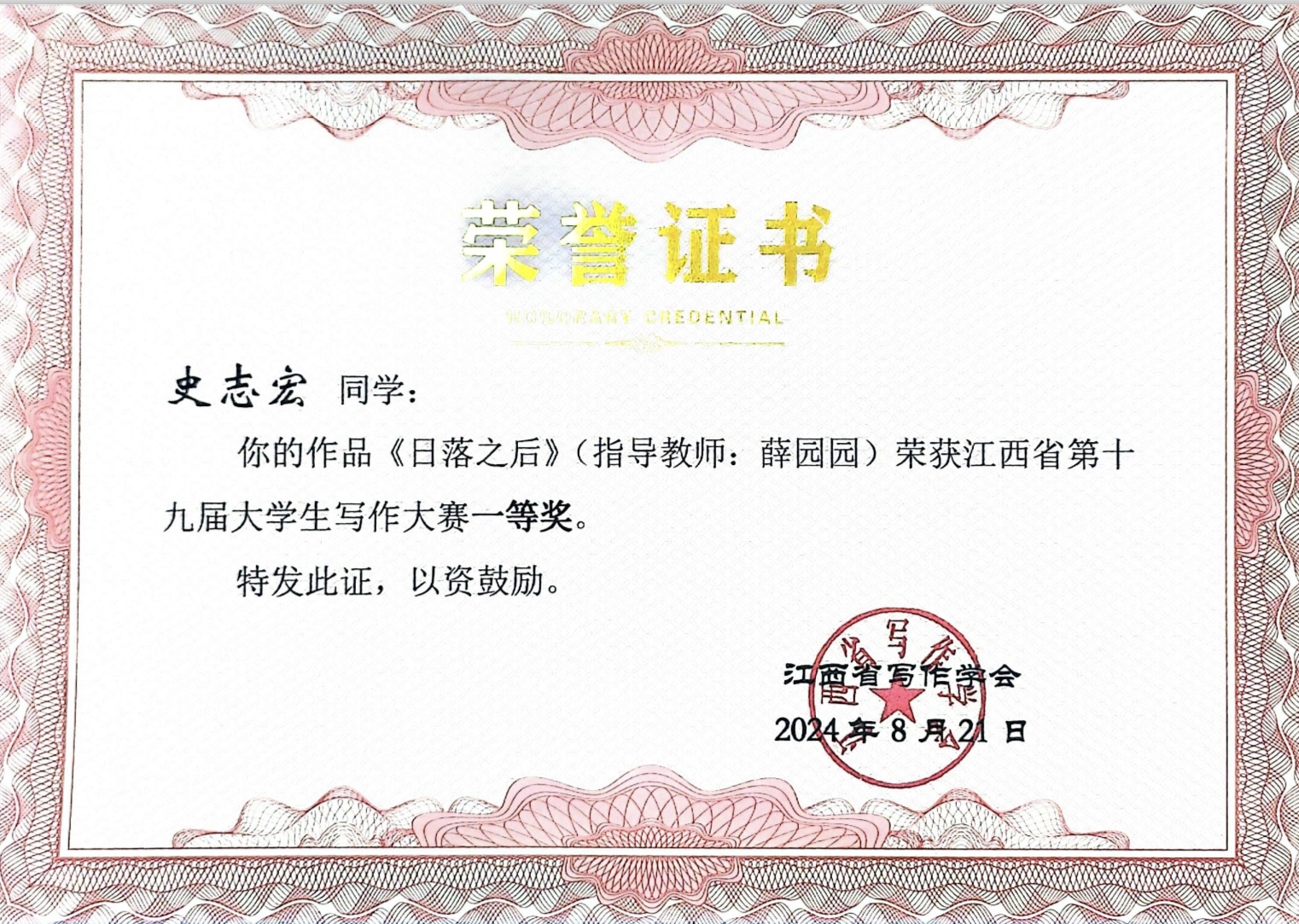 【喜报】英国beat365官方网站人文学子在江西省第十九届大学生写作大赛中取得佳绩