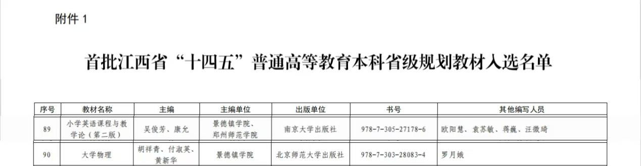 【喜报】beat365官网4部教材入选首批江西省“十四五”普通高等教育本科省级规划教材