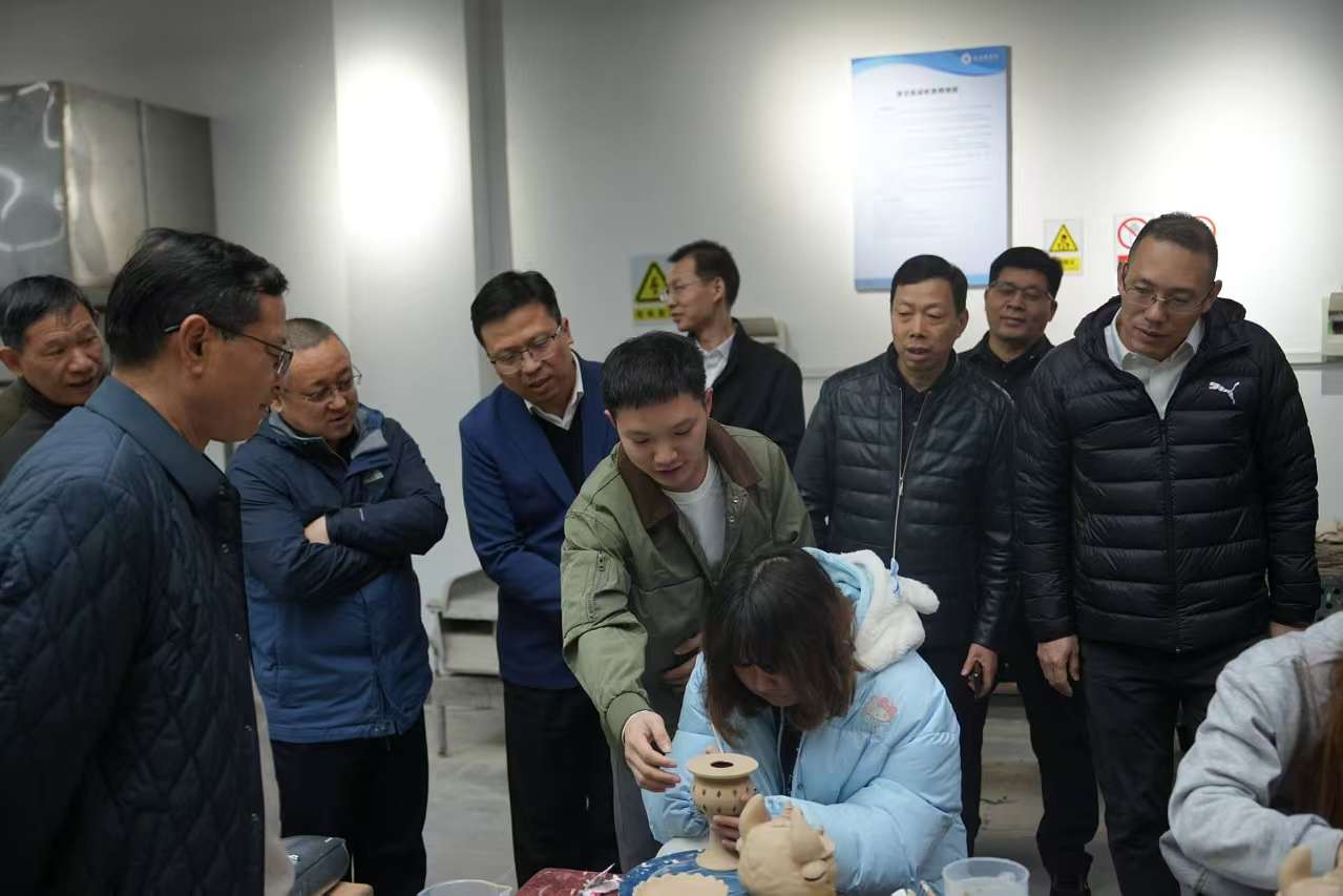(本网讯:文|杜雨翰/图|戴佳乐、毛玉婷、杜雨翰)12月5日上午,国家开放大学副校长李松一行来beat365官网开展调研。校党委书记叶观荣、副校长黄志坚热情接待并陪同。 参观陶瓷美术与设计艺术学院 校融媒体中心记者杜雨翰摄 ...