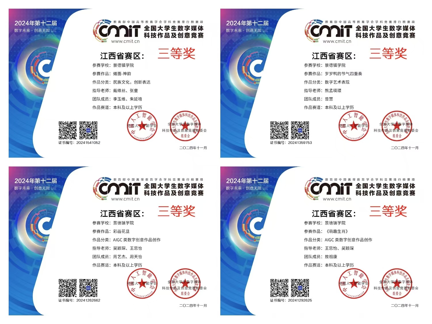 【喜报】beat365官网陶瓷美术与设计艺术学院师生在“第12届全国大学生数字媒体科技作品及创意”中获国奖4项、省奖4项