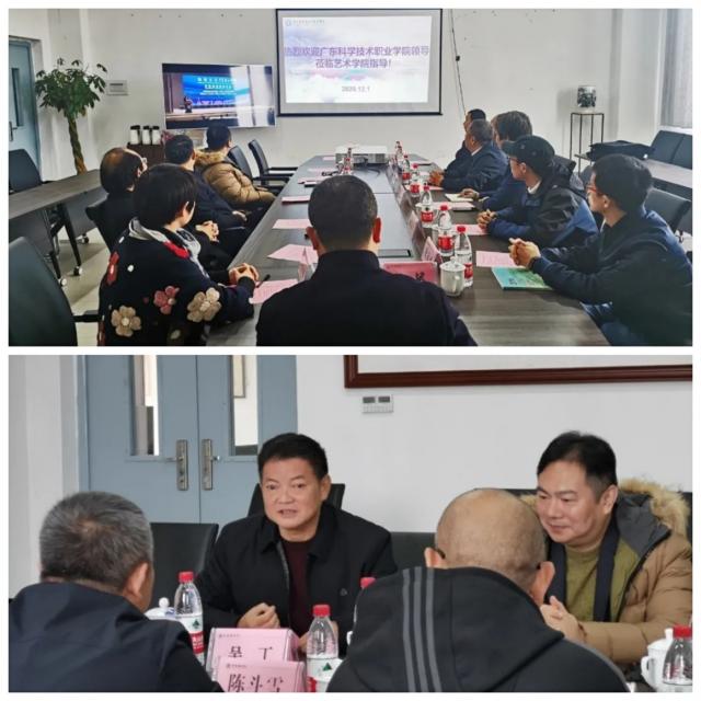 (本网讯:文|黄珊梅/图|王影)为了进一步加强两校间合作与交流.12月1日,广东科学技术职业学院党委委员、副校长陈斗雪一行6人到艺术学院进行交流访问,校党委委员、副校长吴丁在艺术学院三楼会议室热情接待陈斗雪一行。...