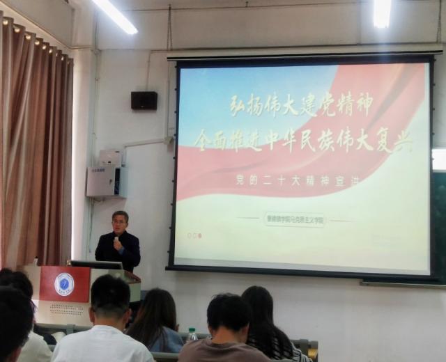 (本网讯:晏功明)11月7日至11日,在前期集体备课、制作课件和教案、讲义的基础上,马克思主义学院教师面向全校一万多名学生宣讲党的二十大精神,掀起师生学习贯彻党的二十大精神新高潮。