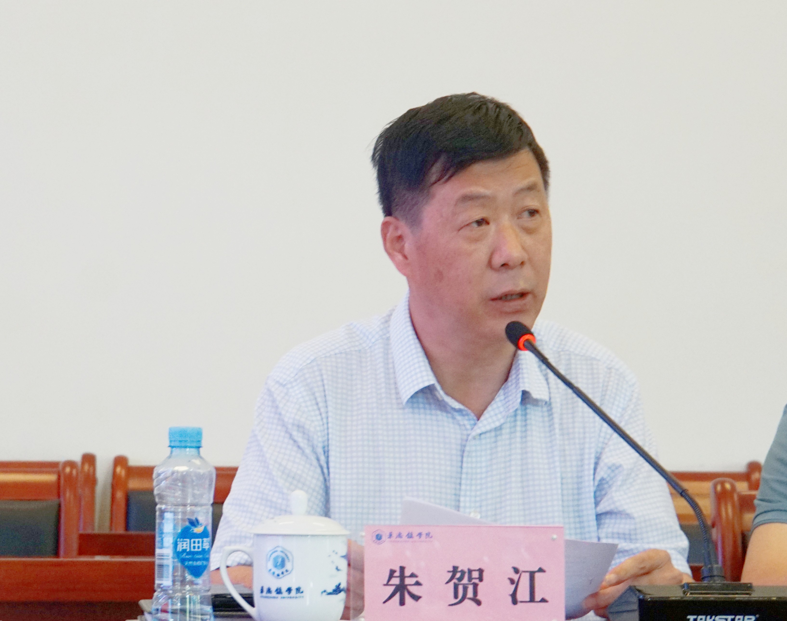 朱贺江以“学习贯彻习近平新时代中国特色社会主义思想,以高质量的教育助力中国式现代化”为题作中心发言,他表示,教育是国之大计,党之大计,要高举旗帜、坚守初心,党建引领、立德树人;要加快改革创新发展,全面提高人才自主培养质量,着力造就拔尖创新人才,更好服务和融入新发展格局,推动学校高质量发展。