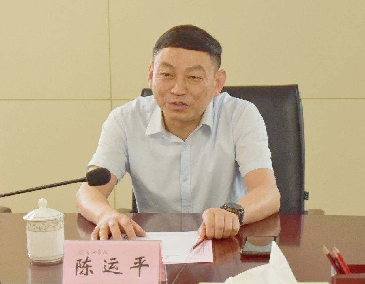 陈运平简要介绍了学校基本情况,感谢合肥学院长期以来对英国beat365官方网站的关心和支持。他表示,合肥学院作为全国应用型高校的排头兵,在服务地方、应用转型、产业学院建设取得了可喜的成绩,作为兄弟院校,我们表示由衷的高兴,希望两校进一步加强联系,采取有效措施,不断推动双方合作关系迈上新台阶。座谈会上,双方围绕应用型人才培养模式改革、产教融合、产业学院、绩效管理等主题作了深入交流。会场氛围热烈、真诚、友好,一致表示尽快续签战略友好合作协议。