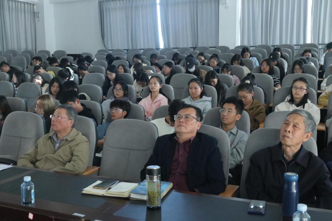 讲座由校关工委与人文学院主办。师生代表近200人聆听讲座。